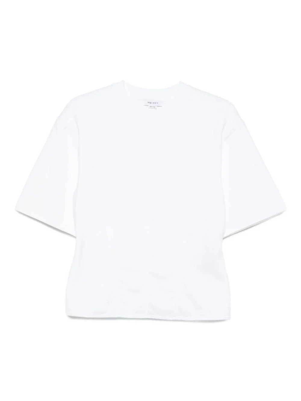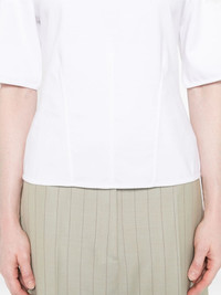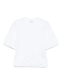 crew-neck T-shirt Highlights - White - Short sleeves - Round neck - Seam details Made in Italy Composition Cotton 98%, Elastane 2% SIZE & FIT Model measurements Height 5 ft 9 in(1.75 m) Bust/Chest 34.64 in(88 cm) Hips 36.61 in(93 cm) Waist 26.37 in(67 cm) Washing instructions Hand Wash