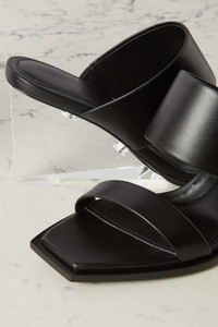 EDITORS'NOTES It's the unexpected details that define Alexander McQueen's designs. Classic from the front, these 'Shard' mules are made from smooth leather and set on sculptural metallic heels that appear to defy gravity. SIZE & FIT - Fits true to size, take your normal size - Italian sizing DETAILS & CARE - Black leather (Calf) - Slip on