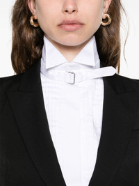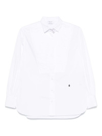 pleated panel shirt Highlights - White - Pleated panel - Button fastening - Long sleeves - Curved hem - Small logo detail Made in Italy Composition Cotton 100%, Viscose 80%, Polyester 20% SIZE & FIT Model measurements Height 5 ft 10 in(1.79 m) Bust/Chest 35.43 in(90 cm) Hips 35.03 in(89 cm) Waist 25.19 in(64 cm) FittingInformation Designed to be unstructured, offering a loose fit throughout Made from a midweight non-stretch fabric Washing instructions Dry Clean Only