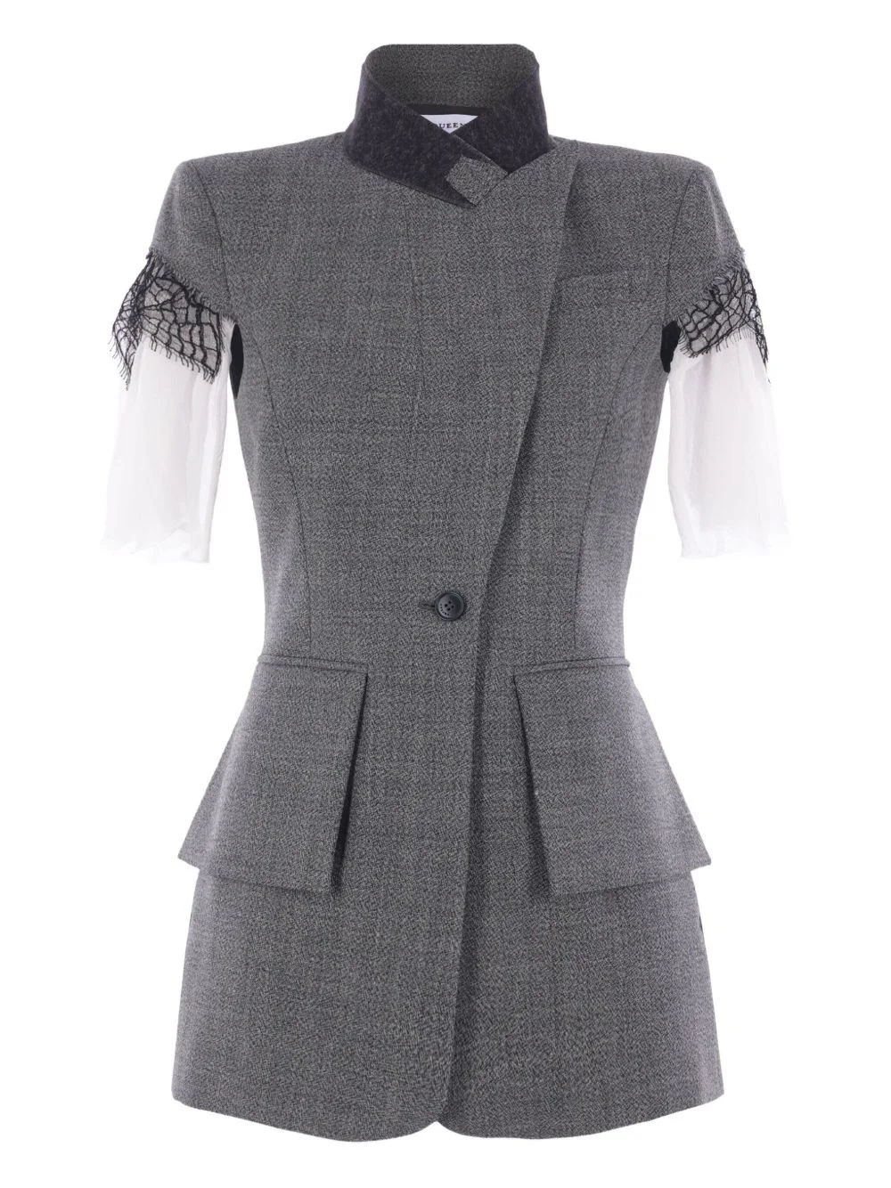 short-sleeve blazer Highlights - Grey - Wool - Single-button fastening - Short sleeves - Lace inserts Imported Composition Wool 100% Washing instructions Read Manufacturer Guidelines