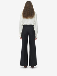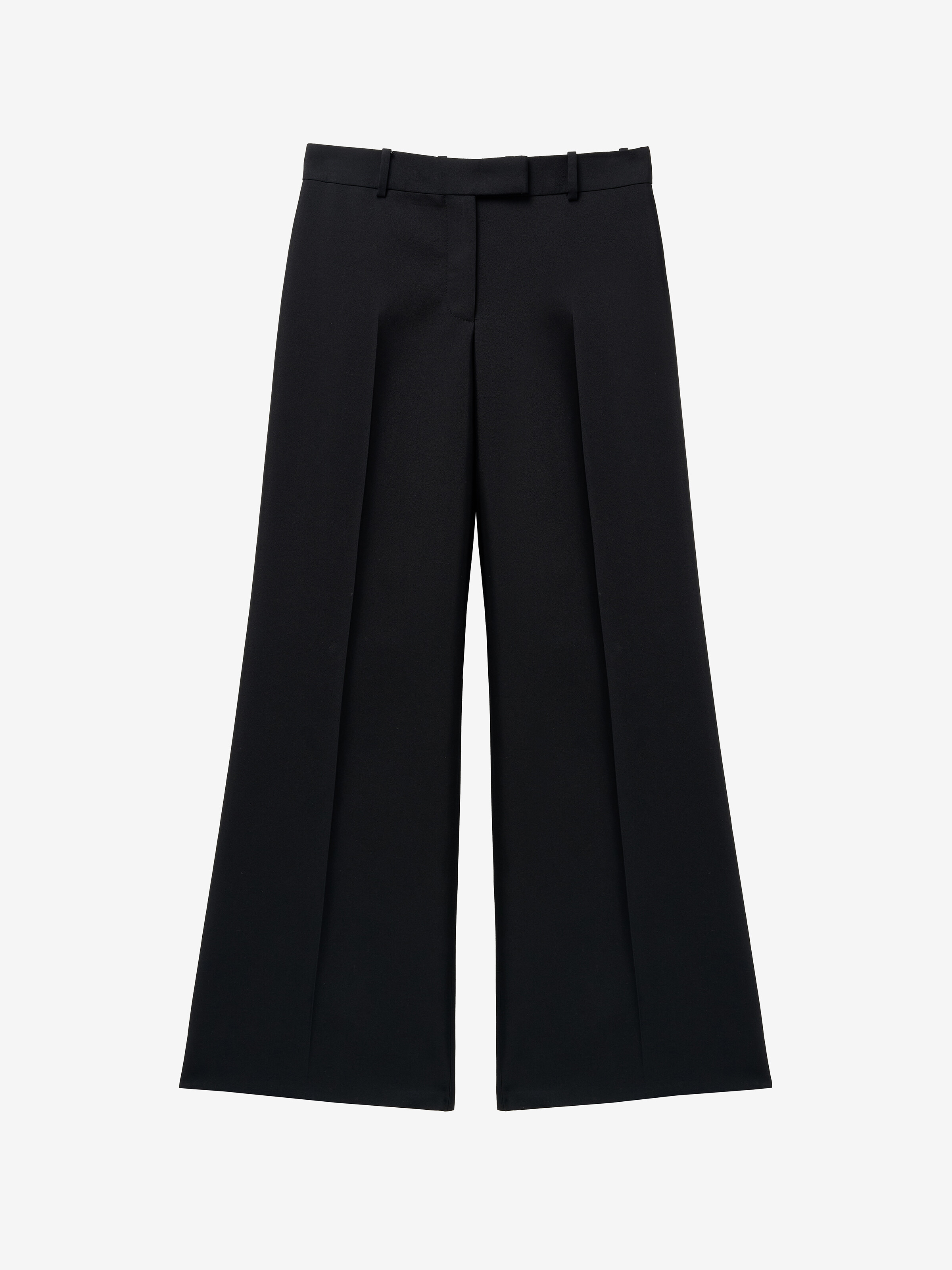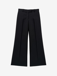 Trousers in black wool mohair. Wide-leg silhouette with belt loops, satin side stripes and back welt pockets. Finished with a concealed zip and hook fastening. Complete the look with the matching jacket. Product details - Belt loops - Back welt pockets - Concealed zip and hook fastening - Contains certified wool yarn - Product code: 818196QJAEK1000 - Made in Italy - Material: Wool , Mohair