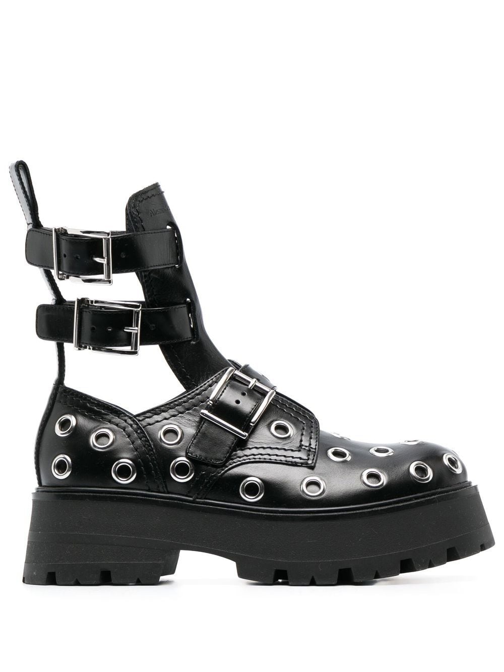 silver stud embellished leather boots silver stud embellished leather boots from Alexander McQueen featuring black, calf leather, silver-tone stud embellishment, buckle-fastening ankle strap, ardillon-buckle fastening and mid heel. Composition Outer: Calf Leather 100% Lining: Calf Leather 100% Sole: Rubber 100% SIZE & FIT Measurement CIRCUMFERENCE 7.9 in(20 cm) HEEL 2.2 in(5.5 cm) HEIGHT 6.7 in(17 cm) Sole height 1.8 in(4.5 cm)