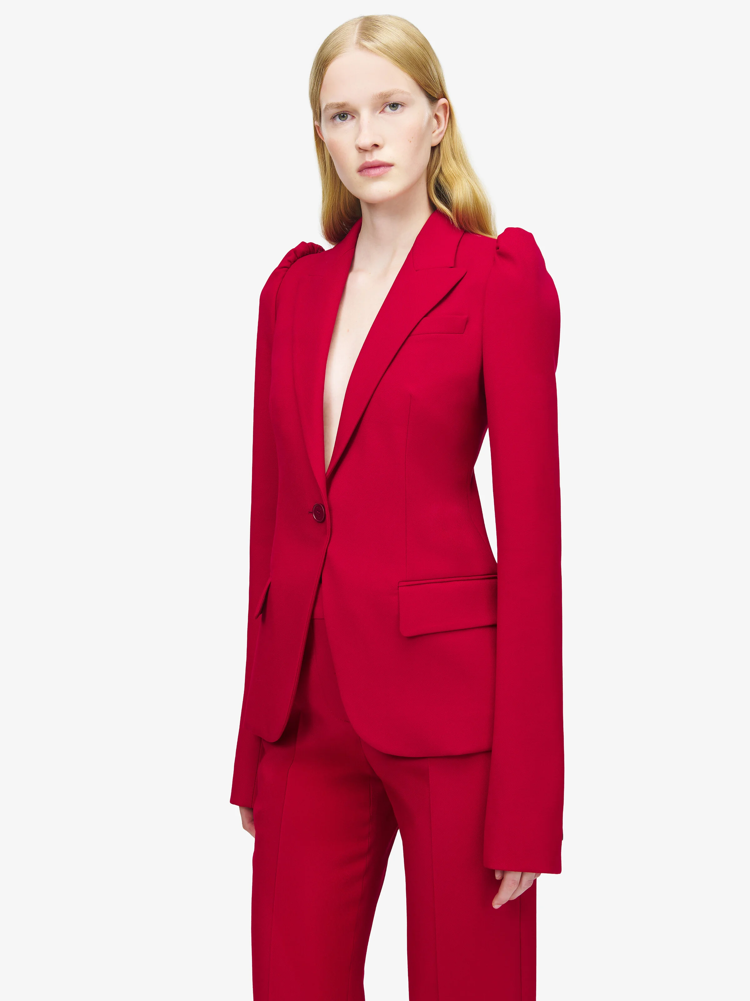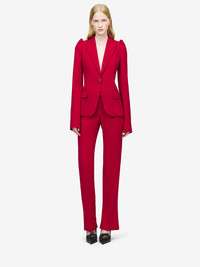 Single-breasted jacket in crimson grain de poudre. Notched lapels, chest pocket and two flap pockets on the sides. Finished with a single button fastening. Product details - Notched lapels - Side flap pockets - Single button fastening - Product code: 848491QJAAC6191 - Made in ITALY - Material: 100% Wool