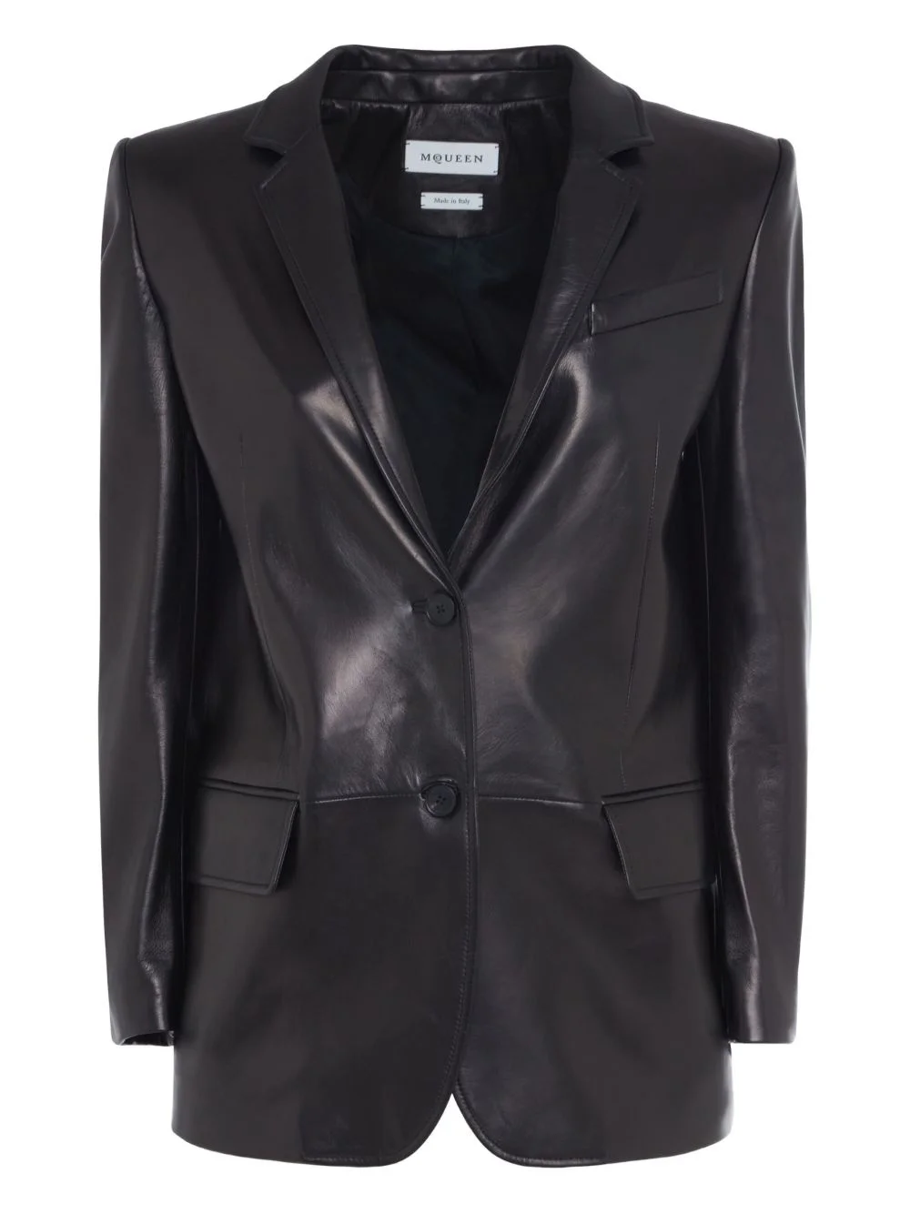 single-breasted leather blazer Highlights - Black - Leather - Single-breasted - Button closure - Notched lapel - Flap pockets - Long sleeves Made in Italy Composition Leather 100% Washing instructions Read Manufacturer Guidelines