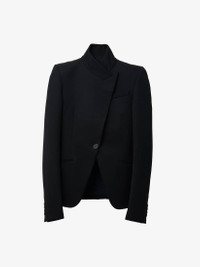 Tailored jacket. Spliced, twisted silhouette. Black cavalry twill with reversed lapel and two jetted pockets. Finished with a concealed single button fastening. Product details - Reversed lapel - Jetted pockets - Single button fastening - Made with certified wool yarn - Product code: 802643QJACH1000 - Made in Italy - Material: 100% Wool