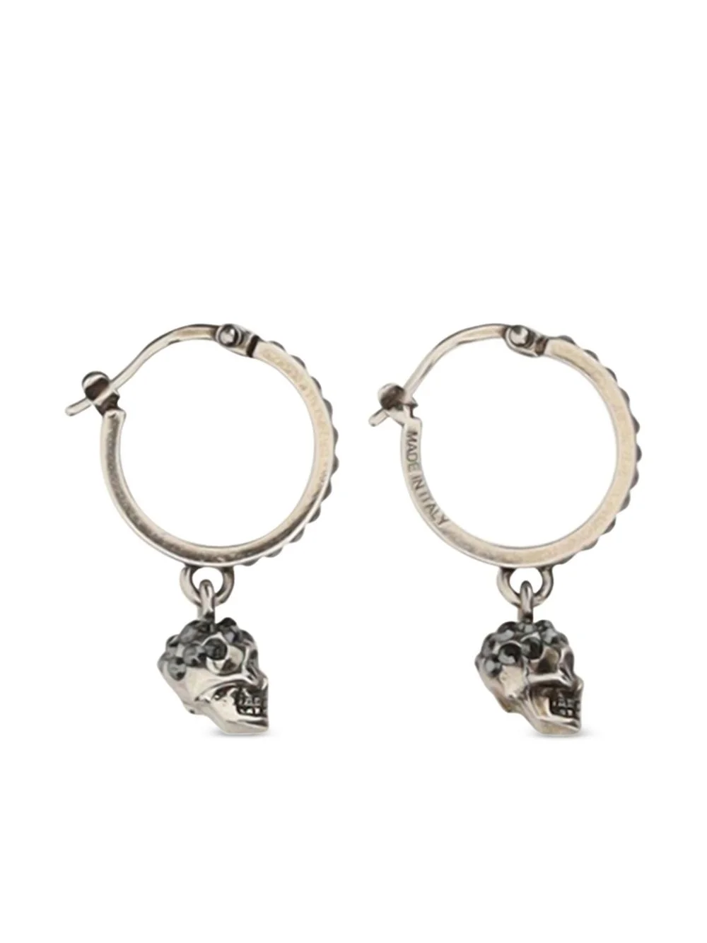 skull drop earrings Bring a mysterious vibe to your everyday looks with these metallic metal skull drop earrings from Alexander McQueen. Constructed with a skull pendant, they'll surely catch the attention of anyone around. Be aware. Featuring a Swarovski embellished skull detail and a spring-ring fastening. Made in Italy SIZE & FIT Model measurements Height 5 ft 10 in(1.77 m) Bust/Chest 32.3 in(82 cm) Hips 35.8 in(91 cm) Waist 24.8 in(63 cm) Measurement WIDTH 0.7 in(1.5 cm) HEIGHT 1.1 in(3 cm) Weight (single earring) 3 g(3 g)