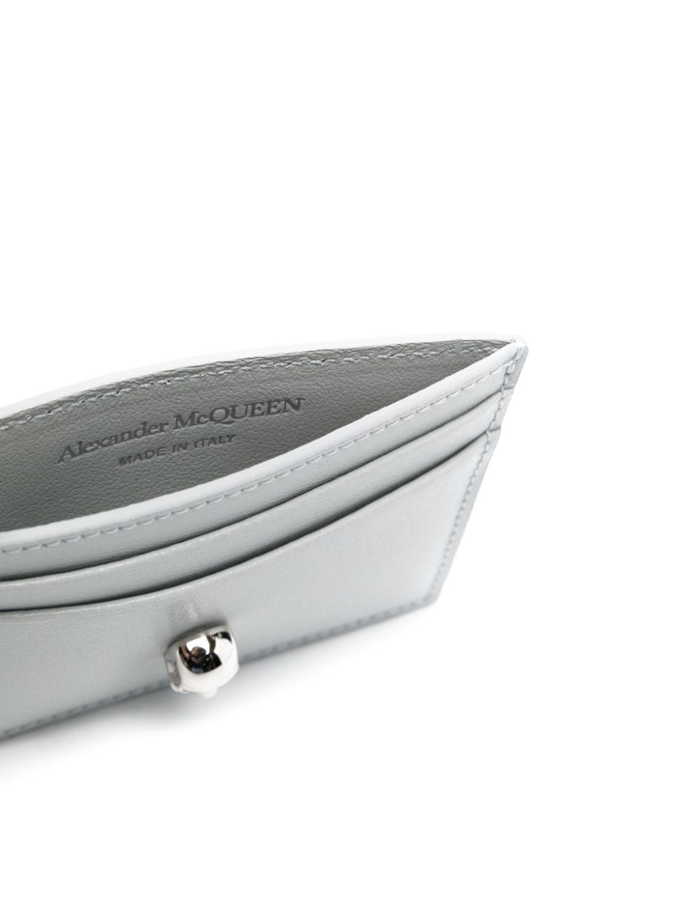 Skull leather card holder Paired with the signature skull motif, this Alexander McQueen cardholder arrives in leather. Highlights - Light grey - Calf leather - Silver-tone hardware - Polished finish - Skull charm - Card slots Composition Outer: Calf Leather 100% SIZE & FIT Measurement Length 3.9 in(10 cm) WIDTH 2.8 in(7 cm)