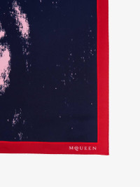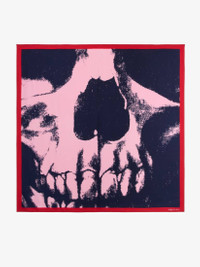 Painters pink and navy silk twill shawl featuring a skull print with a contrasting border. The shawl is finished with the McQueen logo. Product details - Dimensions: 138 x 138cm / 54.3 x 54.3 inches - Product code: 8164333001Q5968 - Made in Italy - Material: Silk
