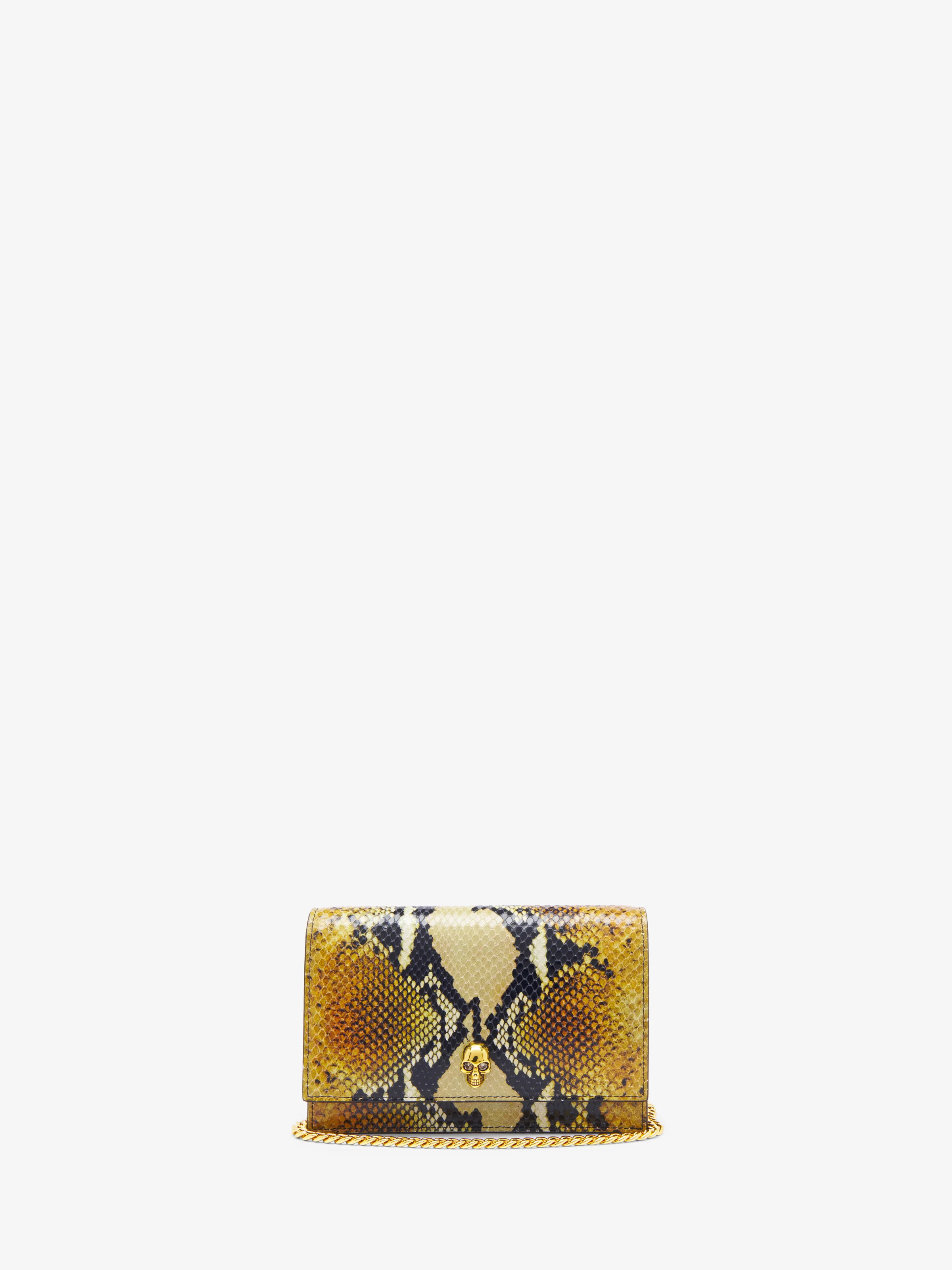 The Small Skull Bag – structured body in calf leather with a python-effect print and a skull-embellished flap. This bag can be worn cross-body with the gold-finished chain strap. Product details - Dimensions: 19 x 13 x 5 cm / 7.4 x 5.1 x 1.9 inches - Magent fastening - One central compartment and one card pocket - Gold-finished chain strap - Accommodates smartphones - Product code: 61308817HB18490 - Made in Italy - Material: Calf Leather
