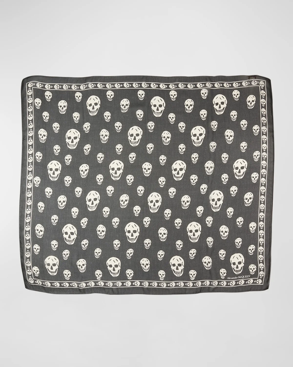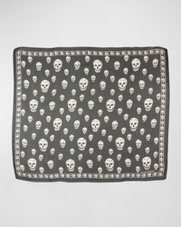 McQueen tonal skull scarf in wool Features signature logo accent Approx. 47.2"L Eyelash fringe trim May be styled in multiple ways Dry clean Made in Italy