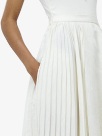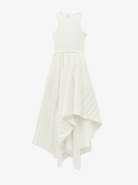 Sleeveless dress in ivory responsible core jersey. Detailed with a crew neck and a long pleated skirt with an asymmetric hem. Finished with a side zip fastening. Product details - Crew neck - Side zip fastening - Product code: 814517QLAED9015 - Made in Italy