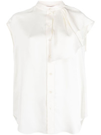 sleeveless ruffled blouse Alexander McQueen showcases its penchant for movement with this blouse – a ruffled panel flows around the chest. The white sleeveless garment is cut from silk and finished with front button fastenings. Highlights - Ivory white - Silk - Stand-up collar - Sleeveless - Front button fastening - Ruffled detailing - Straight hem Made in Italy Composition Outer: Silk 100% Lining: Acetate 74%, Silk 26% SIZE & FIT Model measurements Height 5 ft 10 in(1.79 m) Bust/Chest 31.1 in(79 cm) Hips 35.03 in(89 cm) Waist 24.01 in(61 cm) FittingInformation Designed to be unstructured, offering a loose fit throughout Made from a lightweight non-stretch fabric This piece fits true to size – take your usual size