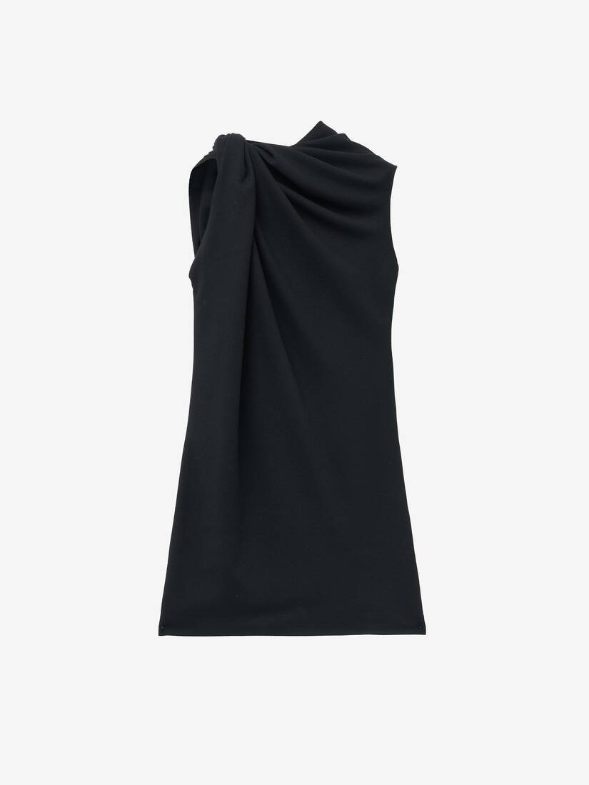 Mini dress in black light wool crepe. Crew neck with knot detailing on the shoulder. Product details - Crew neck - Side zip fastening - Product code: 814681QJAES1000 - Made in Italy - Material: Wool