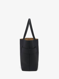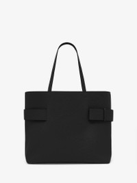 The McQueen T-Bar Sling shopper – crafted from black grainy calf leather and wrapped with a wide leather belt. Featuring an oversized statement T-Bar buckle engraved with the McQueen logo. Can be carried handheld or on the shoulder using the leather handles. Product details - Dimensions: Length 37 x Height 32 x Depth 15.5 cm / 14.5 x 12.5 x 6.1 inches - Silver tone metal T-Bar buckle - Handle drop: 25 cm / 9.8 inches - T-Bar length: 15 cm / 5.9 inches - McQueen metal lettering on the front - One central compartment - Internal leather pouch - Caramel suede calf leather lining - Product code: 8135321VDDM1000 - Made in Italy - Material: Calf Leather