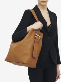 The McQueen T-Bar Sling shoulder bag – soft body crafted from brown grainy calf leather. Can be worn on the shoulder using the adjustable leather strap. Detailed with an oversized statement T-Bar buckle in silver tone metal engraved with the McQueen logo. Product details - Dimensions: Length 38 x Height 37 x Depth 15 cm / 14.9 x 14.5 x 5.9 inches - Adjustable leather strap with silver tone metal T-Bar buckle - Strap drop: 33-43 cm / 12.9-16.9 inches - T-Bar length: 15 cm / 5.9 inches - McQueen metal lettering on the side - Magnetic fastening - One central compartment with internal zip pocket, flat pocket with press stud, card slot and metal D-ring - Brown suede calf leather lining - Product code: 8103001VDDM2116 - Made in Italy - Material: Calf Leather