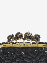 The Spider Jewelled Clutch – black satin base embellished with a handcrafted glass stone and bead embroidery. The bag features a handle adorned with jewelled rings and can be worn either hand-held or over the shoulder with its gold-finished chain. Product details - Dimensions: 10 x 18 x 5cm / 3.9 x 7 x 1.9 inches - Strap drop: 55cm / 21.6 inches - Antique gold-finished handle adorned with jewelled rings - Detachable chain strap - Brass hardware with antique gold finishing - Black nappa leather lining - Due to the appearance of the product, we recommend stowing it in your hold luggage when passing through airport security. For the same reason we recommend not taking the bag to public places, such as law courts and sports stadiums, where there may be security checks. - Product code: 8301521BLFO1000 - Made in Italy - Material: 100% Silk