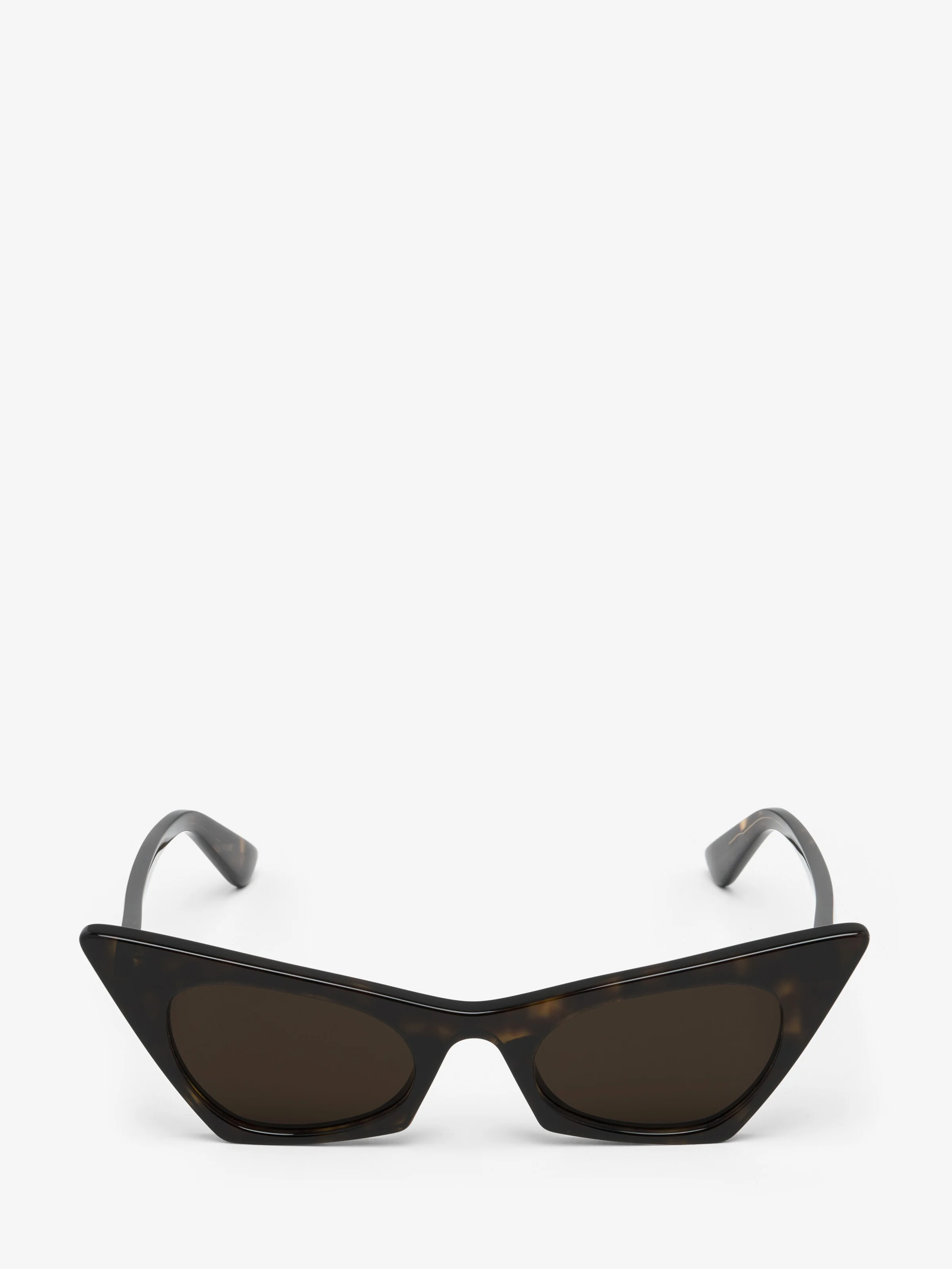 Havana acetate sunglasses fitted with solid brown lenses. The sunglasses have a spiky cat-eye shape and are detailed with a lasered McQueen logo on the temples. All McQueen Eyewear is 100% certified UV protective (UVA and UVB rays). Product details - Product code: 856536J07492305 - Made in ITALY - Material: 100% Plastic
