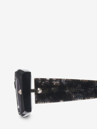 Grey havana acetate sunglasses fitted with solid violet lenses. The sunglasses have a rectangular shape and are detailed with two silver metal spike studs on both the front and the temples. Finished with a tonal lasered Alexander McQueen signature.<br><br>All Alexander McQueen Eyewear is 100% certified UV protective (UVA and UVB rays).<br>This frame can be fitted with prescription lenses. Product details - Frame contains biobased (at least 35%) and recycled (27%) materials. Lenses contain 39% biobased material - Product code: 760621J07492088 - Made in Italy