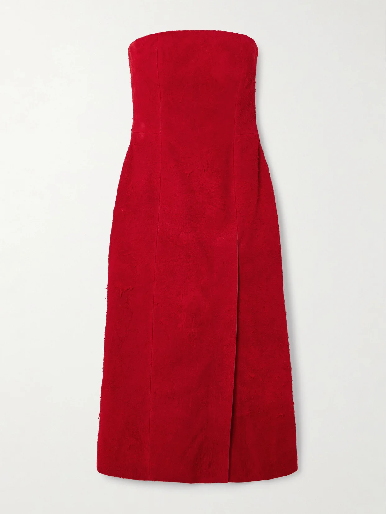 Strapless Suede Midi Dress