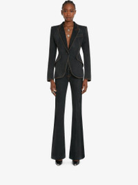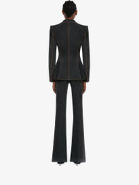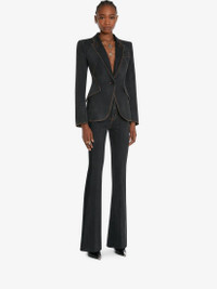 Bootcut trousers in stonewashed black stretch denim featuring belt loops and a single patch pocket on the back. Finished with contrast topstitching. Material:96% Cotton, 4% Elastan Product Code:687111QMABZ1131