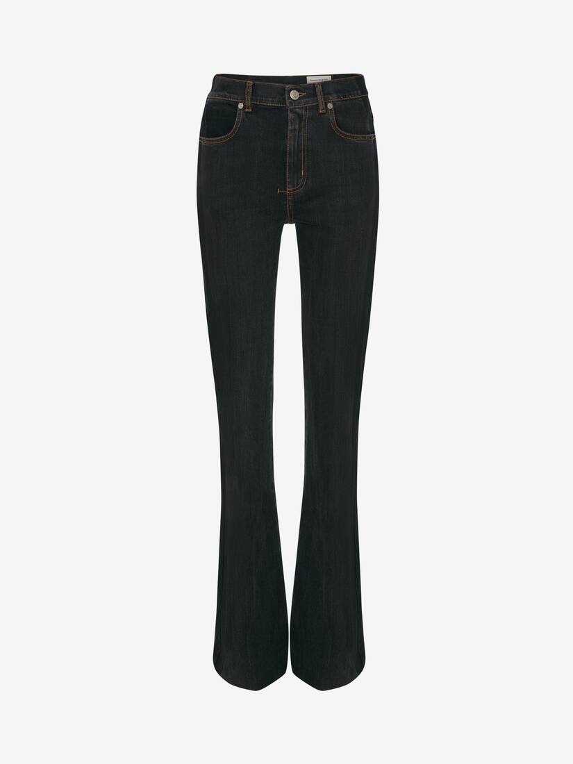 Stretch Bootcut Denim Trousers in Stone Washed Black