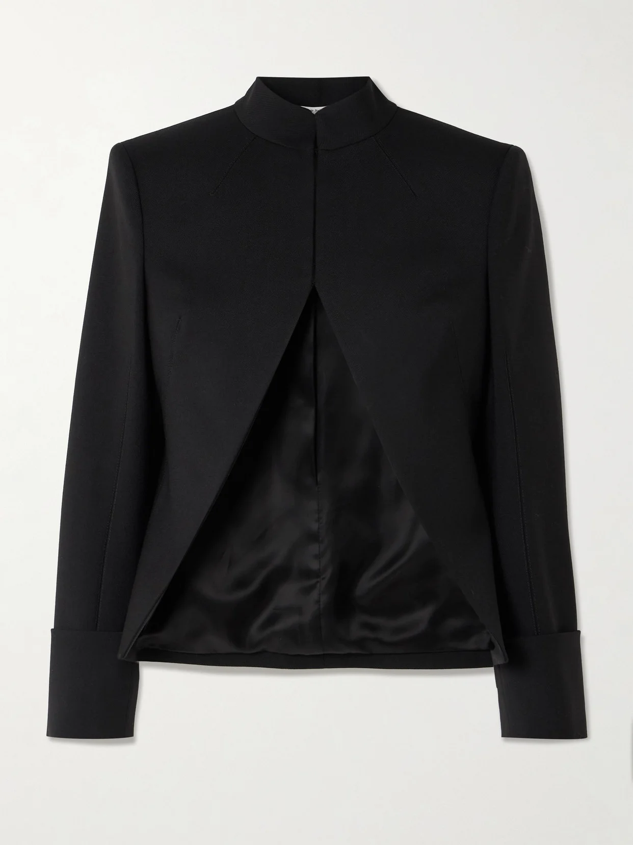 Expert cuts cement McQueen's collections. This jacket is tailored from smooth stretch-wool twill and darted at the collar. The open front encourages experimentation - try layering it over everything from shirts to dresses.