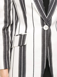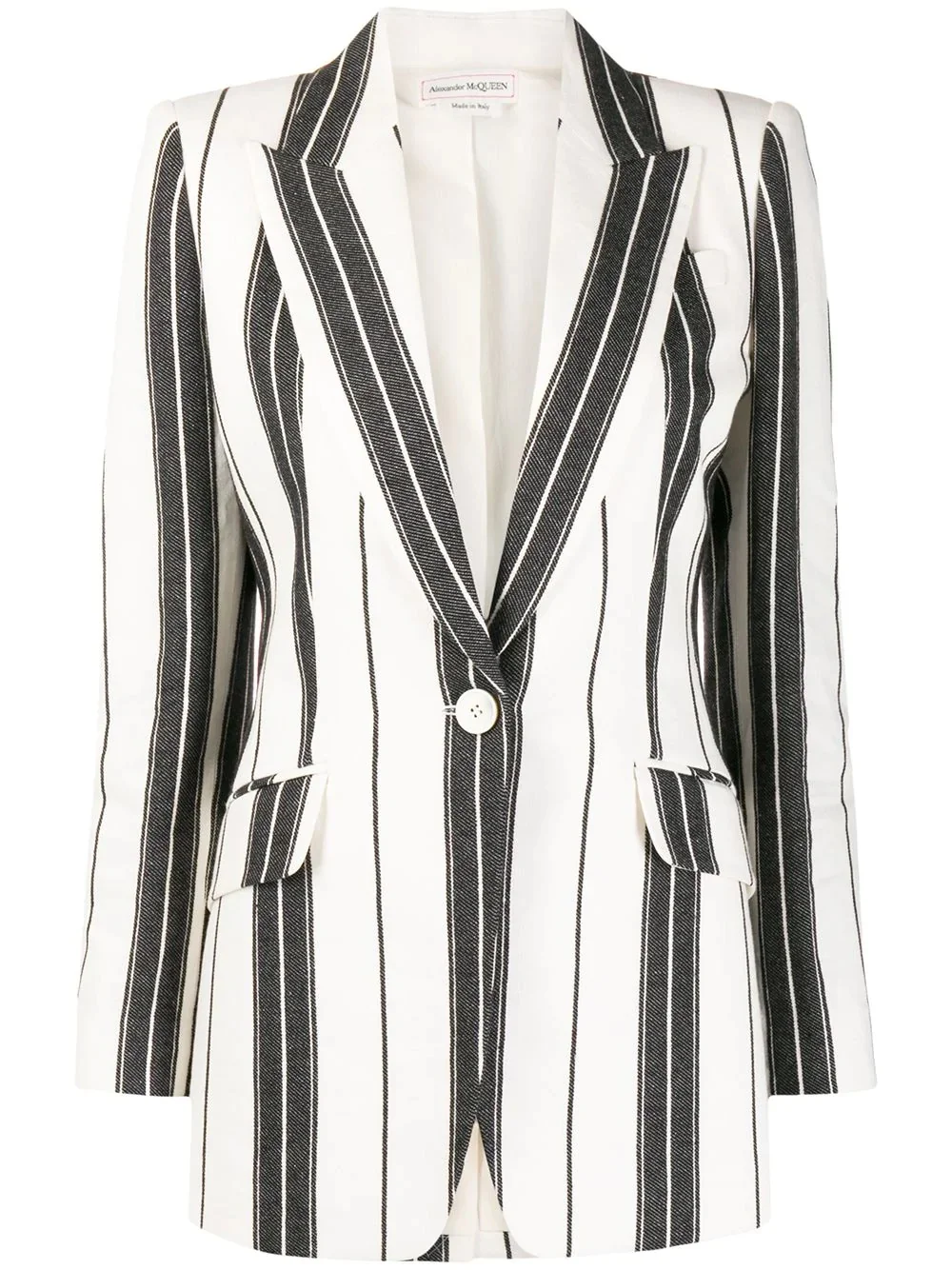 striped single-breasted blazer Businesswoman meets Lady D. That's how we feel about this striped blazer from Alexander McQueen. Get ready for the flashlights, paparazzies will be all-over this. Highlights - White - Linen-cotton - Striped print - Buttoned cuffs - Long sleeves - Peak lapels - Front button fastening - Two front flap pockets Made in Italy Composition Outer: Linen/Flax 80%, Cotton 20% Lining: Cotton 100%, Cupro 100% Washing instructions Dry Clean Only