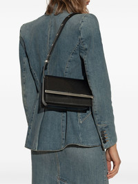 T-Bar shoulder bag Highlights - Black - Foldover top with magnetic fastening - Adjustable shoulder strap - Main compartment - Engraved logo Made in Italy Composition Leather 100% SIZE & FIT Measurement HEIGHT 5.31 in(13.5 cm) WIDTH 8.26 in(21 cm)