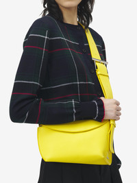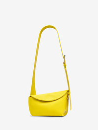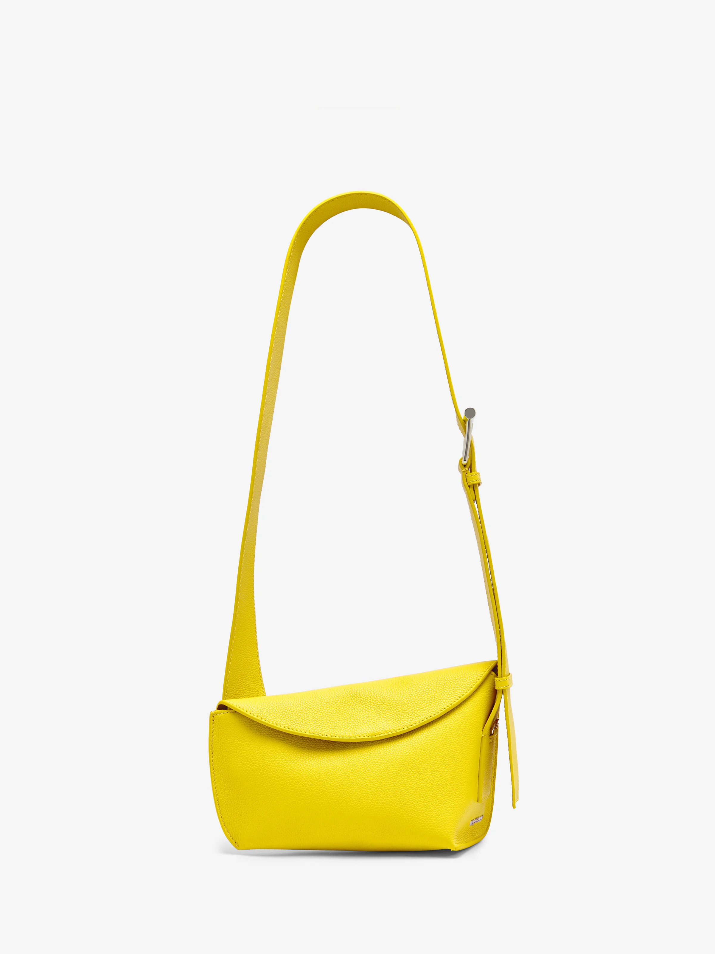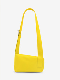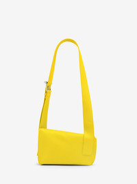 The T-Bar Sling Bag – asymmetrical and handcrafted from a single piece of grainy citron calf leather. Can be worn crossbody using the adjustable leather strap. Detailed with a statement T-Bar buckle in shiny silver tone metal engraved with the McQueen logo. Product details - Dimensions: Length 20 x Height 13-16 x Depth 0.5-12 cm / 7.8 x 5.1-6.2 x 0.1-4.7 inches - Adjustable leather strap with shiny silver tone metal T-Bar buckle - Strap drop: 42-55 cm / 16.5-21.6 inches - T-Bar length: 9 cm / 3.5 inches - McQueen metal lettering and external metal D-ring on the side - Magnetic and zip fastening - One central zip compartment with card slot and metal D-ring - Beige suede calf leather lining - Product code: 8346551VDBF7200 - Made in Italy - Material: Calf Leather
