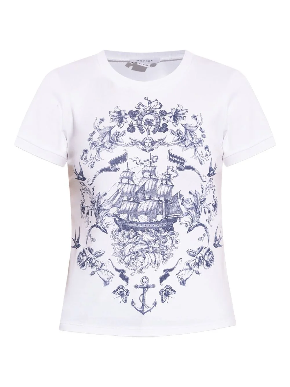 graphic-print t-shirt Highlights - White - Graphic ship design - Floral embellishments - Crew neck - Short sleeves Made in Italy Composition Cotton 100% Washing instructions Read Manufacturer Guidelines