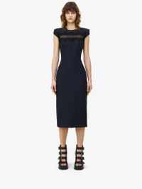 Tailored pencil dress in navy blue wool mohair. Crew neck, cap sleeves and sheer black Spider lace detailing. Finished with a back zip fastening. Product details - Crew neck - Cap sleeves - Back zip fastening - Contains certified wool yarn - Product code: 830138QJAEK4100 - Made in Italy - Material: Wool, Mohair