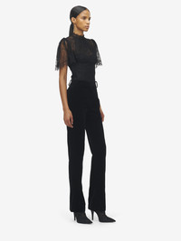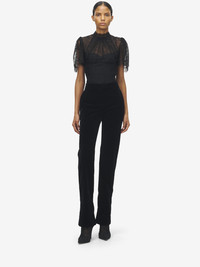 Tailored trousers in black cotton velvet. Detailed with two side pockets, a welt pocket on the back and a slightly flared hem. Finished with a concealed zip and hook fastening. Product details - Side pockets - Back welt pocket - Concealed zip and hook fastening - Product code: 848860QEAGW1000 - Made in ITALY - Material: 69% Viscose, 31% Cupro