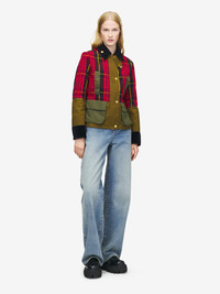 Jacket in green waxed cotton with red, black and yellow tartan ripstop panels. Contrast corduroy collar and cuffs, two slit side pockets, two cargo pockets and kickback detailing. Finished with a zip and press-stud fastening. Product details - Point collar - Side pockets - Zip and press-stud fastening - Product code: 851081QEAHN6120 - Made in ITALY - Material: 60% Cotton, 40% Polyamide