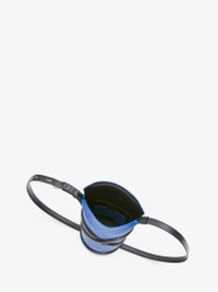 The Curve in electric blue and black calf leather inspired by the harness silhouette and finished with a high frequency debossed Seal Signature. This bag can be worn across the body by using the leather strap or over the shoulder with the strap through the leather loop folded back. Product Details: - Dimensions: 19 x 23 x 16cm / 7.4 x 9 x 6.3 inches - One main compartment with a leather card compartment - Magnetic double flap closure - Adjustable leather strap allowing the bag to be worn crossbody or over the shoulder - Brass hardware with silver finish - Leather lining - Can accommodate a smartphone Material:100% Calf leather Product Code:6564671YB484580