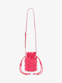 The Soft Curve in neon pink calf leather inspired by the harness silhouette, finished with a lambskin leather drawstring closure and a high frequency debossed Seal Signature. This bag can be worn across the body by using the leather strap or over the shoulder with the strap through the leather loop folded back. Product Details: - Dimensions: 14 x 25 x 14 cm / 5.5 x 9.9 x 5.5 inches - One main compartment with a leather card compartment - Leather drawstring closure - Adjustable leather strap allowing the bag to be worn crossbody or over the shoulder - Brass hardware with silver finish - Leather lining - Can accommodate a smartphone Material:100% Calf Leather Product Code:6968111AXAC5907