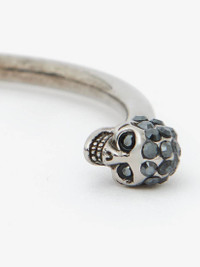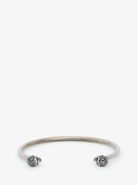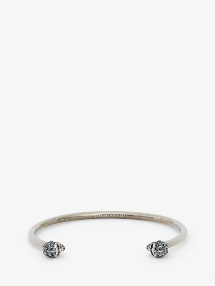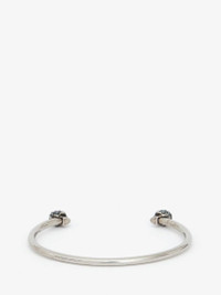 Thin Twin Skull bracelet. Alexander McQueen engraved signature on the inside of the band. Brass hardware with antique silver finish. Product Details: Size Small • Diameter : 58 mm x 48mm • Gap opening: 30mm Size Medium • Diameter : 60 mm x 50mm • Gap opening: 32mm Material:100% Brass Product Code:550499J160Y1177