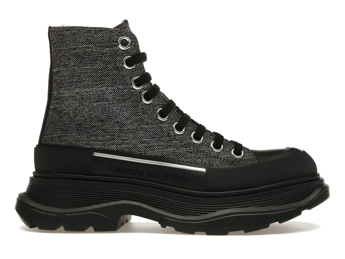 Alexander McQueen Tread Slick Lace Up Boot Black Silver (Women's)