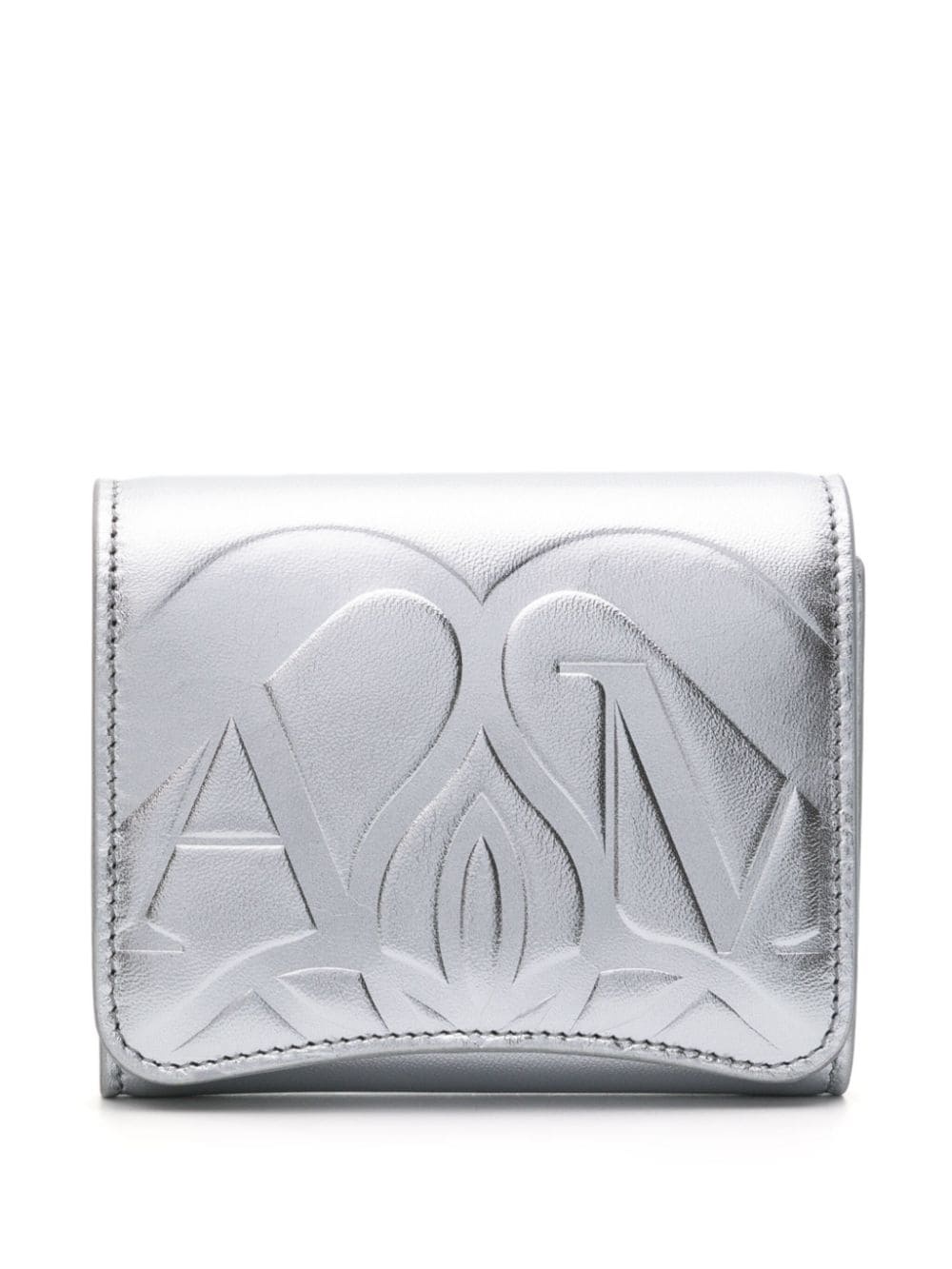 tri-fold metallic leather wallet Highlights - Silver-tone - Calf leather - Metallic finish - Tri-fold design - Debossed logo to the front - Debossed logo to the rear - Stitched edge - Front press-stud fastening - Internal logo stamp - Internal card slots - Internal zip-fastening pocket - Internal slip pockets - Note compartment Made in Italy Composition Outer: Calf Leather 100% SIZE & FIT Measurement LENGTH 3.93 in(10 cm) WIDTH 4.72 in(12 cm)