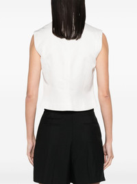 twill-weave tailored waistcoat Highlights - White - Twill weave - Tailored design - Peak lapels - Chest welt pocket - Sleeveless - Two front jetted pockets - Asymmetric hem - Full lining - Front button fastening Made in Italy Composition Lining: Cupro 100% Outer: Viscose 100% SIZE & FIT Model measurements Height 5 ft 10 in(1.78 m) Bust/Chest 33.46 in(85 cm) Hips 36.22 in(92 cm) Waist 23.22 in(59 cm) FittingInformation Designed for a slim fit that sits just away from the body offering a close yet comfortable fit Made from a midweight non-stretch fabric This piece fits true to size – take your usual size Washing instructions Dry Clean Only