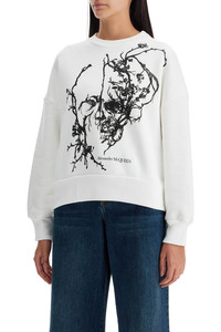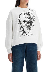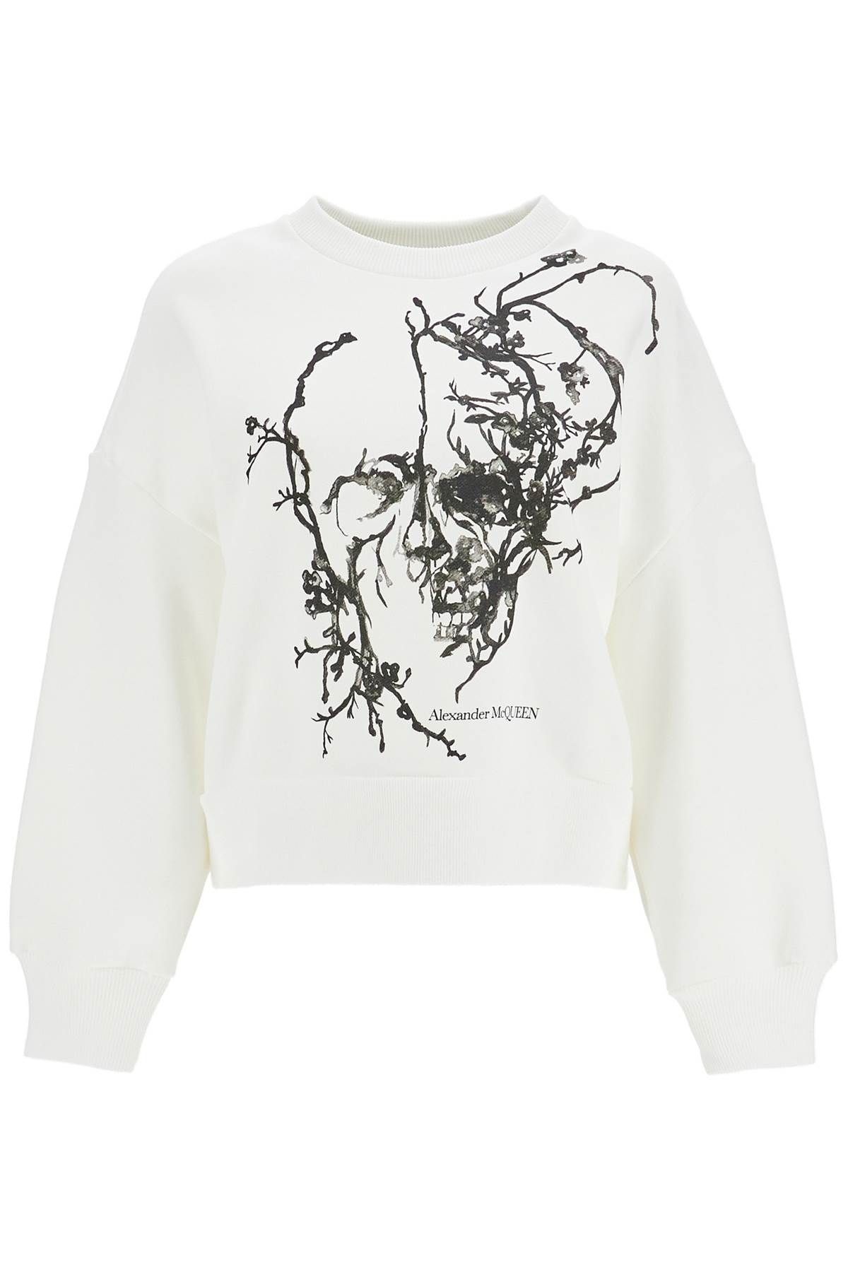 This Alexander McQueen crewneck sweatshirt is decorated on the front with a "Cherry Blossom Skull" print. Made of pure cotton French terry, it has a wide and boxy cut with ribbed edges. The model is 177 cm tall and wears an IT size 38. PRODUCT DETAILS Made In: Italy Composizione: 100%CO Supplier Color Code: WHITE BLACK Supplier Code: 797767 QZAM7 FTA: No Season: FW24 Fit: Boxy, Nessuno, Oversized Fit
