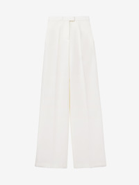 Wide leg trousers in bone Japanese wool gabardine. High waist, side pockets and tab detailing on the back. Finished with a concealed zip and hook fastening. Product details - High waist - Side pockets - Back jetted pocket - Concealed zip and hook fastening - Made with certified wool yarn - Product code: 830017QJADK9025 - Made in Italy - Material: Wool