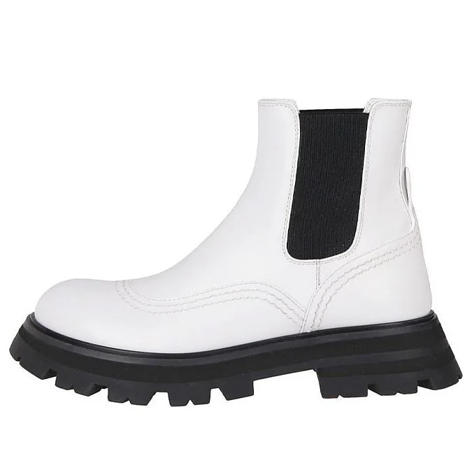 (WMNS) Alexander McQueen Wander Chelsea Boots 'White Black' 666367WHZ849360