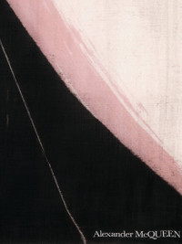 Black and ivory cashmere shawl detailed with an all-over Abstract Brushstroke motif. Finished with frayed edges and an Alexander McQueen signature in the bottom right corner. Product Details: • Dimensions: 140x200cm Material:100% Cashmere Product Code:7332763201Q1078