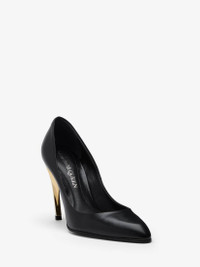 Black leather pump detailed with an almond toe silhouette and finished with a silver and gold lacquered Armadillo heel. Product details - Almond toe - Lacquered heel - Leather sole - Heel height: 95mm - Product code: 780683WIEX21399 - Made in Italy