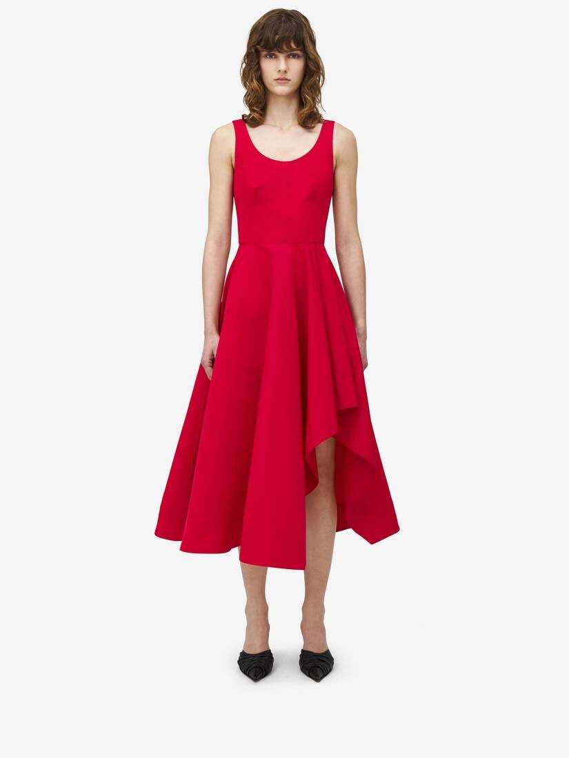Lust red polyfaille dress featuring a midi skirt with asymmetric drape detailing. The dress is detailed with a scoop neck and is finished with a back zip fastening. Product details - Scoop neck - Sleeveless design - Asymmetric drape detailing - Back zip fastening - Product code: 830101QEACM6615 - Made in Italy - Material: 100% Polyester