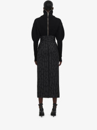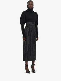 Long pencil skirt in wool black and ivory all-over Broken Pinstripe fabric. The skirt features a high waist and is finished with a back zip fastening. Product Details: • High waist • Back zip fastening • Made with certified wool yarn Material:100% Wool Product Code:769333QJADN1080