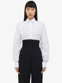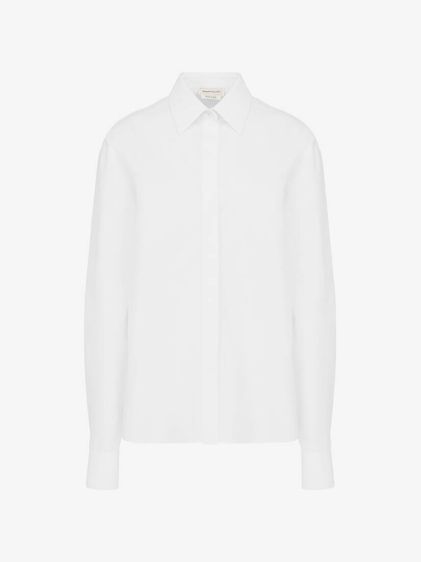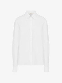Optical white cotton poplin shirt featuring a point collar and a curved hem. The shirt is finished with a concealed front button fastening. Product details - Point collar - Concealed front button fastening - The style fits true to size - Made with organic cotton yarn - Product code: 767940QAAAD9000 - Made in Italy - Material: 100% Cotton