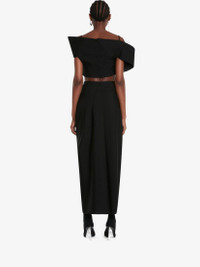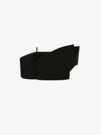 Black sartorial wool cropped lapel corset top inspired by a dissected and reworked tailored jacket, finished with duchess detailing on the inside. Dissected tailoring takes centre stage in the Spring/Summer 2023 collection, with deconstructed, slashed and stripped back silhouettes. Product Details: • Back zip fastening Material:100% Wool Product Code:740256QJACX1000