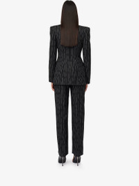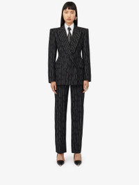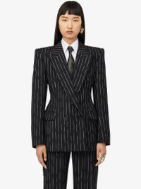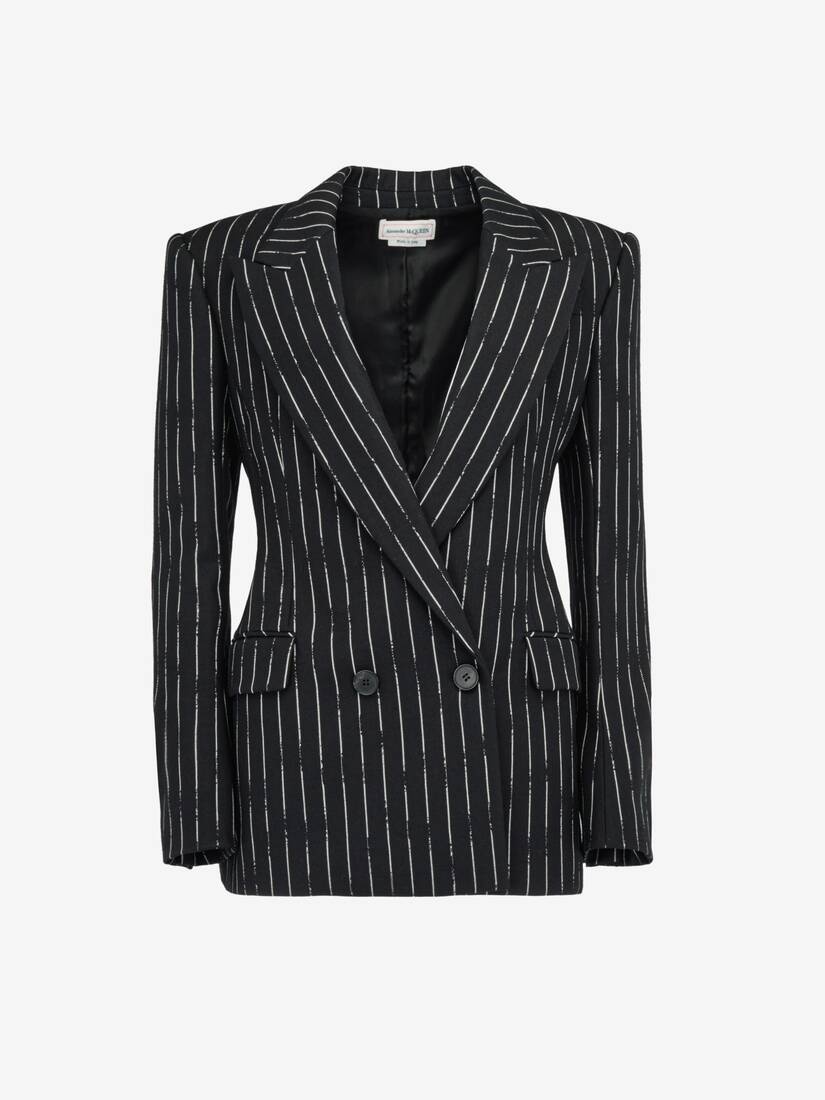 Women's Double-breasted Broken Pinstripe Jacket in Black/ivory