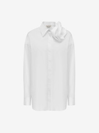 Shirt in optical white cotton poplin featuring draped Orchid detailing on the dropped shoulder. The shirt is finished with a concealed button fastening. Product details - Point collar - Concealed button fastening - Regular fit - Made with organic cotton yarn - Loose Fit - Product code: 768314QAAAD9000 - Made in Italy